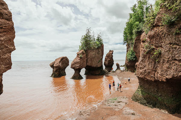 Poursuivez la route jusqu’au parc provincial des rochers Hopewell, l’une des visites incontournables au Nouveau-Brunswick. Le site est constitué de gigantesques monolithes en forme de pots de fleurs autour desquels on peut marcher à marée basse, avant que la marée montante n’en submerge la base. Les plus hautes marées du monde se manifestent ici de façon spectaculaire !